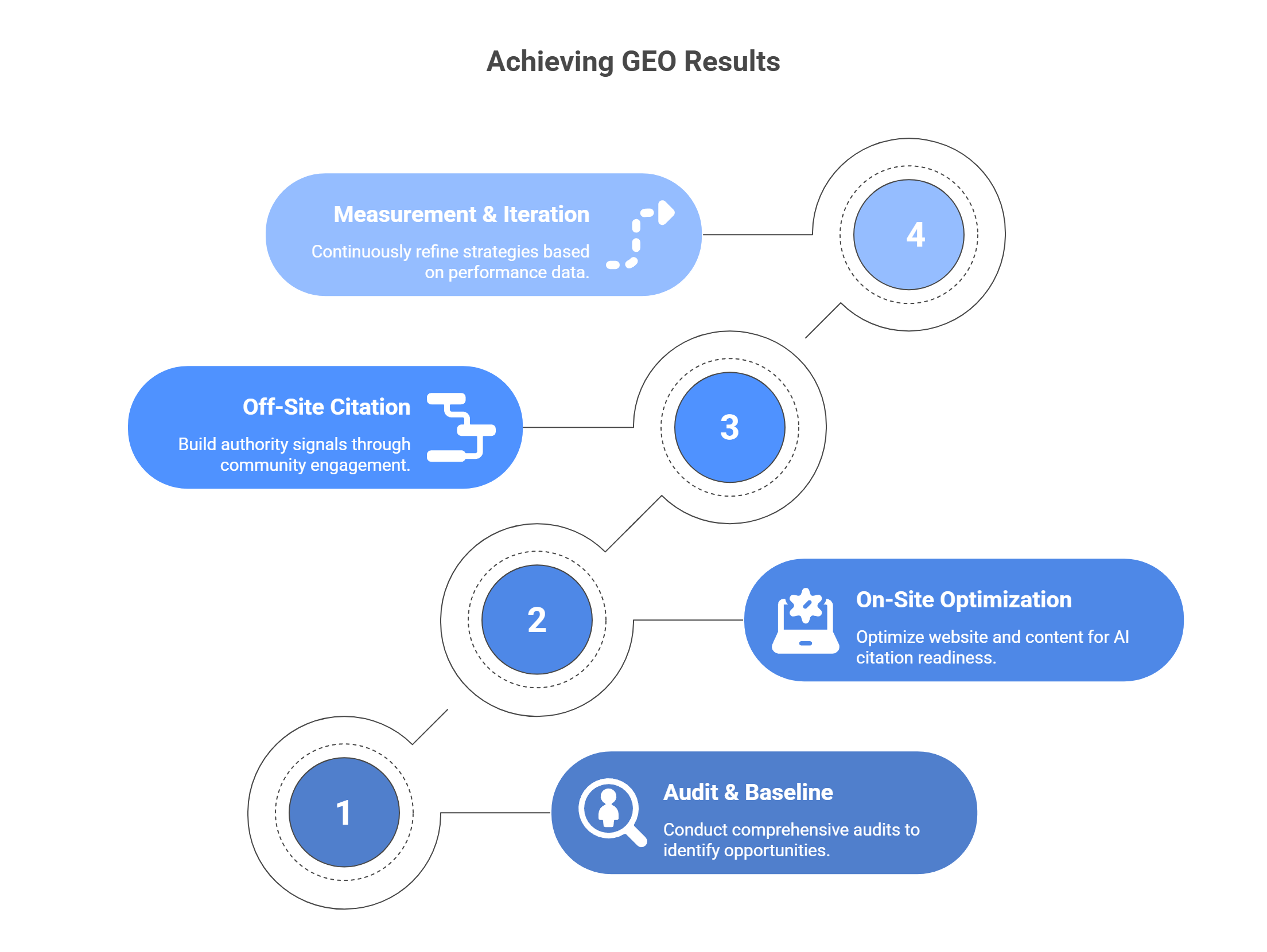 This phase typically runs 4-6 weeks depending on site size and technical complexity. The output is a technically sound foundation that supports all future GEO efforts.
